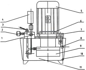 5、電機6、手把7、空氣濾清器8、油窗9、高壓泵10、放油螺11、油  箱